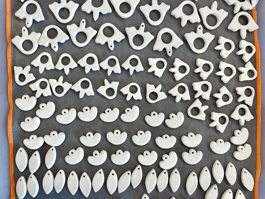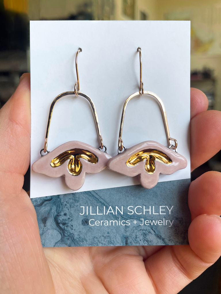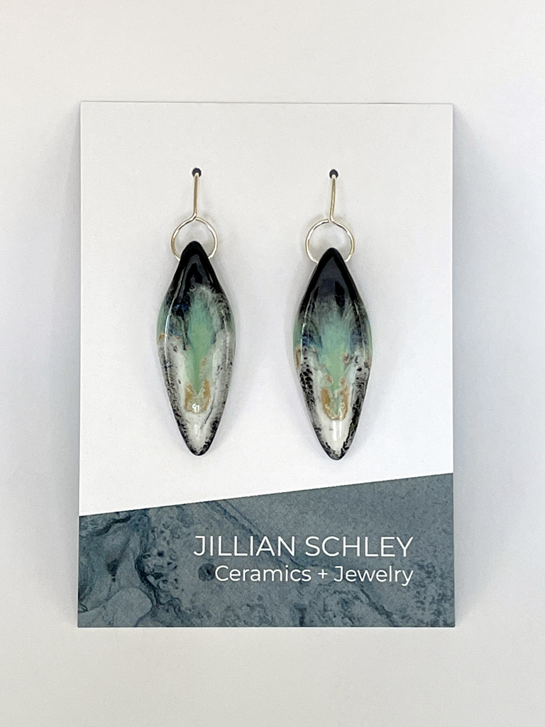 Creating porcelain jewelry allows me to explore color, texture, sculptural form, materials, and methods on a small scale. I enjoy experimenting with materials and investigating possibilities through clay and metal, mixing my own glazes, and creating unique surface finishes to my work. Each piece of jewelry is completed with either sterling silver or 14K gold-filled metal.